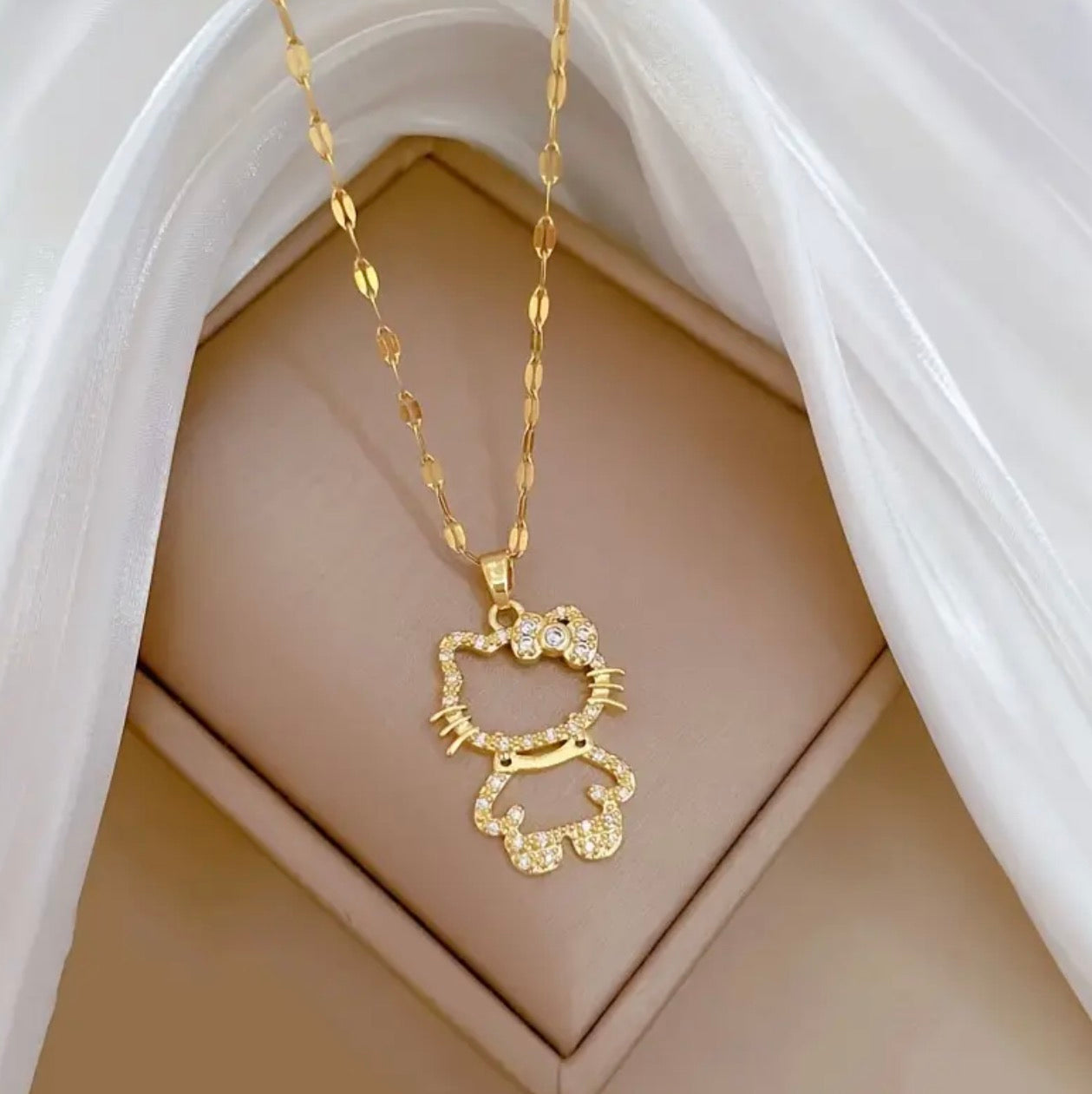 Naszyjnik w kolorze złotym z zawieszką Hello Kitty – tytan, elegancki blask