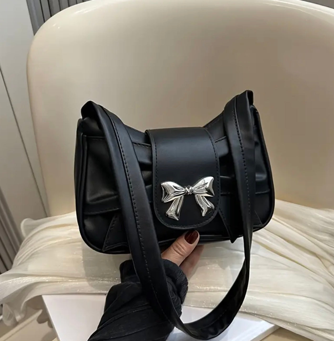 Stylowa torebka z kokardką – materiał PU, elegancja w nowoczesnym wydaniu